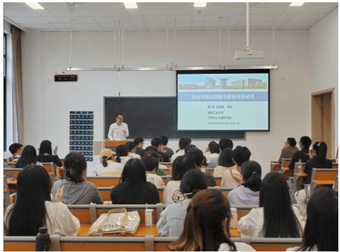讲座伊始,黄多辉首先对杨涛的到来表示了热烈欢迎,并对其进行了介绍。杨涛主要从事非线性动力学与控制研究工作,致力于将非线性优势应用于振动控制、能量俘获、结构健康监测、微纳米机电系统等工程领域。