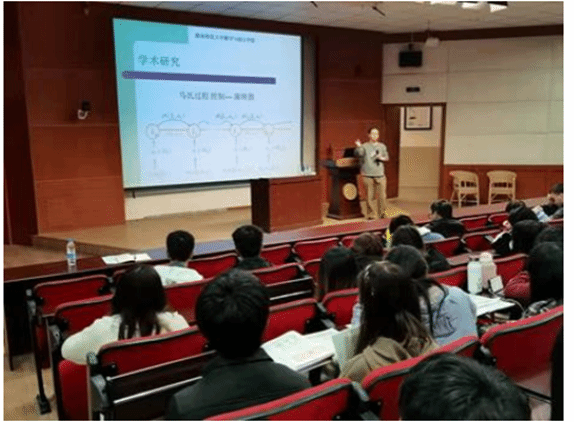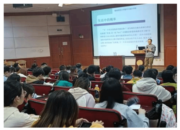 朱教授从日常生活中的实际问题出发,带领大家认识概率,发现有趣的概率现象,体会概率的趣味性。随后,他以概率问题为铺垫,以“Average Optimality for Discrete-Time Markov Decision Processes”为学术话题,向同学们介绍了自己的学术研究,让大家切身体会到概率在数学研究领域的重要性,拓宽了学生们的学术视野。