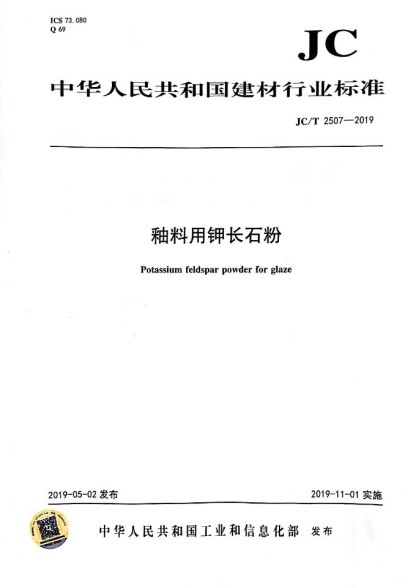 该标准规定了釉料用钾长石粉的要求、试验方法、检验规则及标志、包装、运输与贮存。该标准适用于制作釉料用的天然钾长石粉。