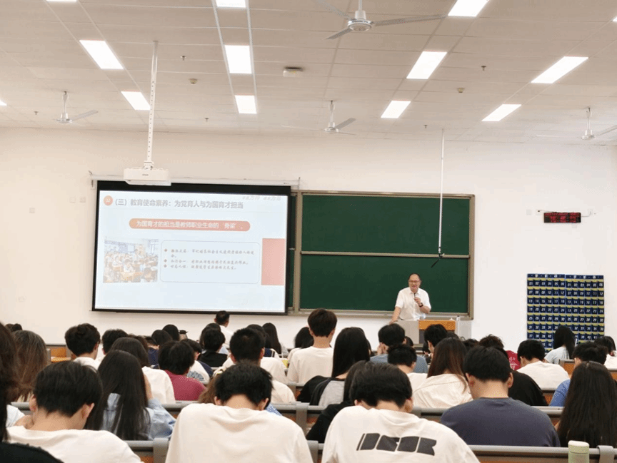 程帆从教育改革发展趋势切入,系统梳理了我国基础教育改革的历史脉络。新一轮教育改革强调“学科交叉”和“实践育人”,要求未来教师具备更广阔的知识视野和跨学科教学能力。讲座从教育理念的转变、教育技术的革新和多元化教育的推进三方面剖析中学教育的发展趋势;阐述了未来教师必备的六大素养:健康的身心素养、思想政治素养、教育使命素养、扎实的专业素养、创新与终身学习素养和沟通与协作素养;并引导学生从自我评估、职业探索、制定方案三个方面进行职业规划。